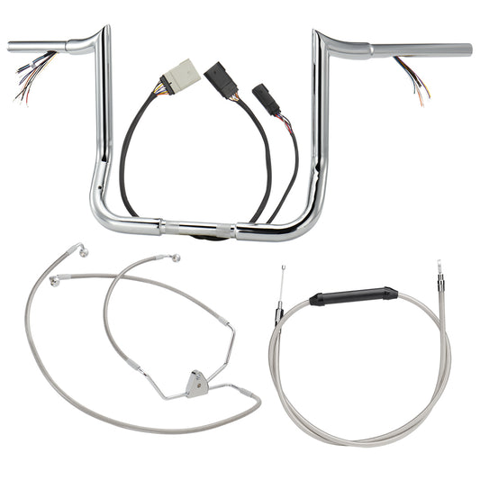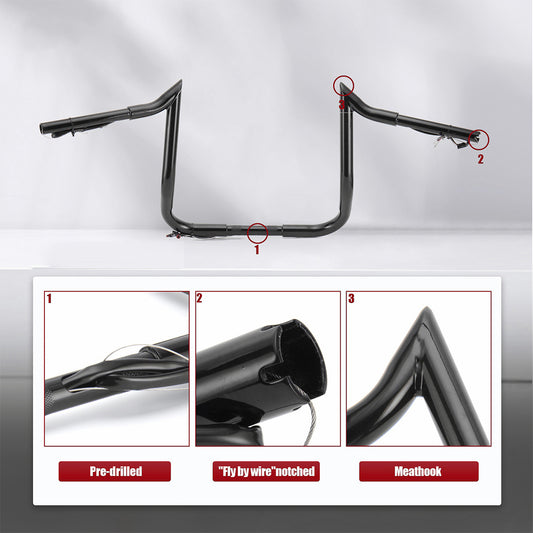 12"/14"/16" Prewired 1.25" Meathook Handlebars with Clutch Cable Brake Line for 2008-2013 Harley Touring without ABS