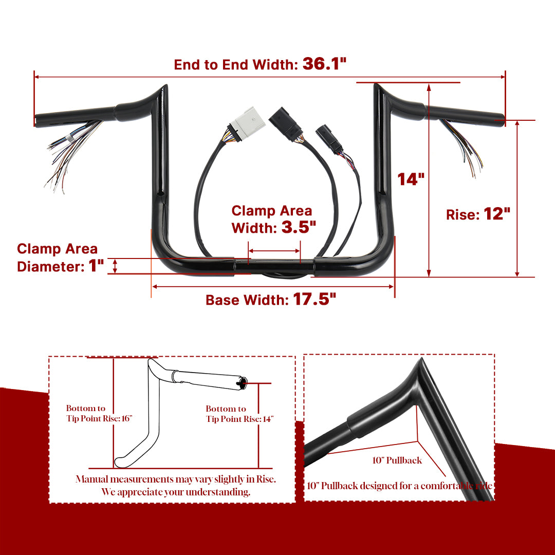 12"/14" Prewired 1.25" Fat Meathook Handlebars for 2008-2013 Harley Touring