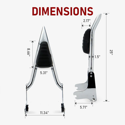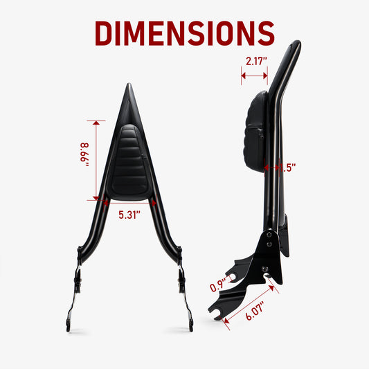Black Sissy Bar Passenger Detachable Backrest for 2009-2025 Harley Touring