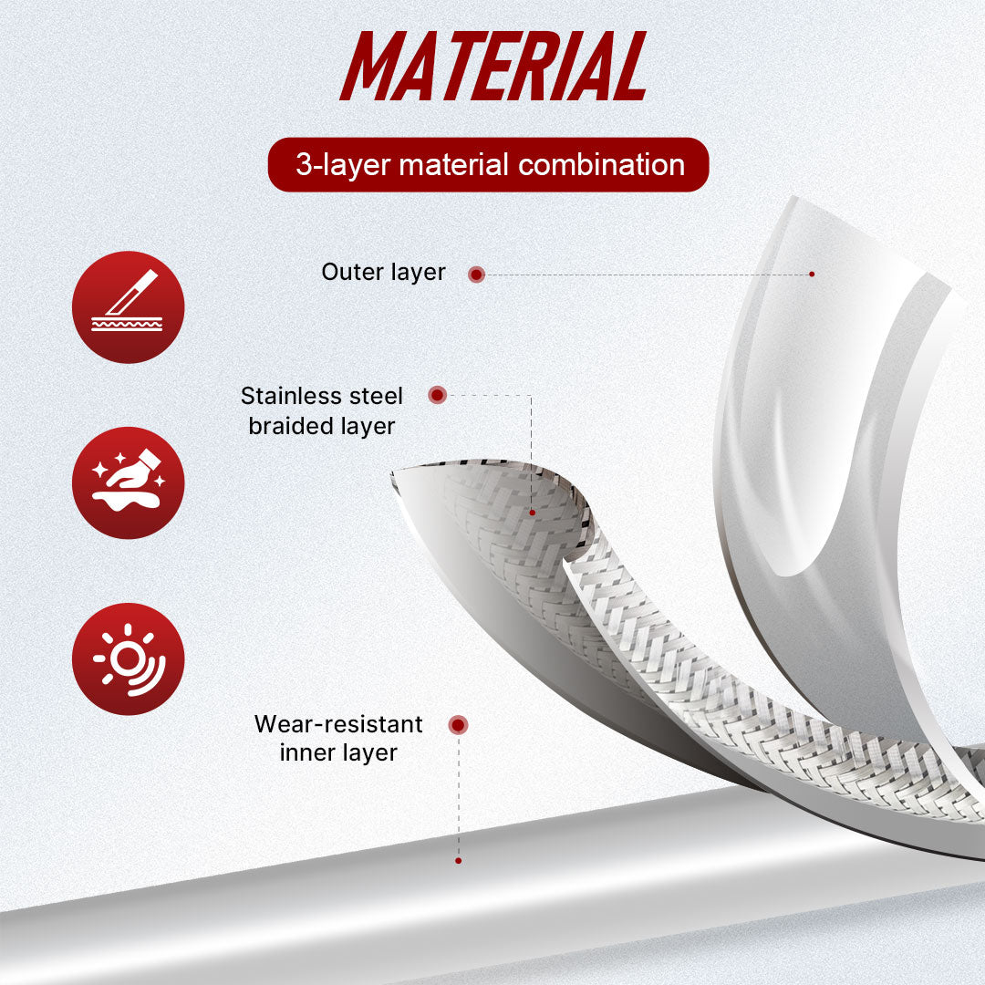Function - This stainless steel braided brake lines barely expand under pressure, requiring less force for maximum effect. And the brake lever feel stays firm (less squishy than rubber hoses) at all times. This advantage reduces braking distances and increases the efficiency of the calipers.